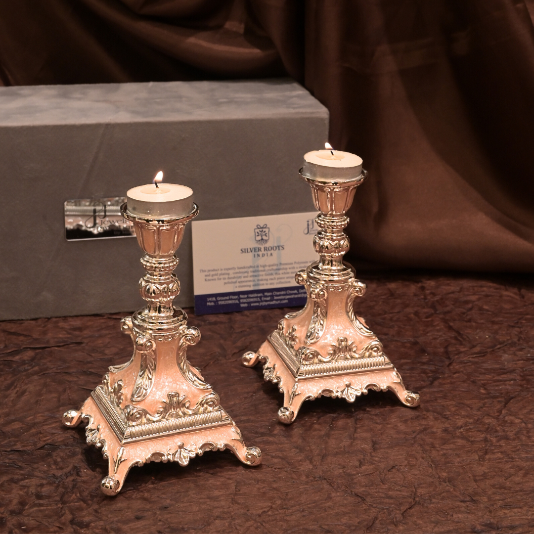 Whether placed on a dining table, a festive altar, or as part of your living room décor, these silver candle holders create a warm, sophisticated glow that elevates every occasion. Their classic design makes them a versatile addition—perfect for spiritual rituals, festive celebrations, or as a centerpiece in elegant gatherings.