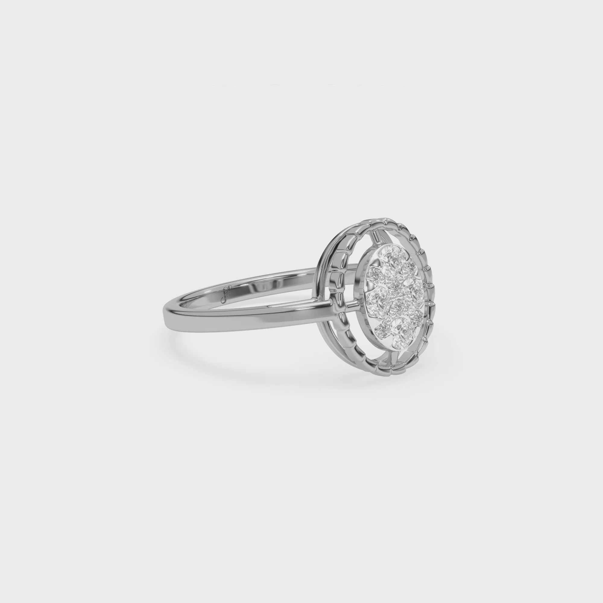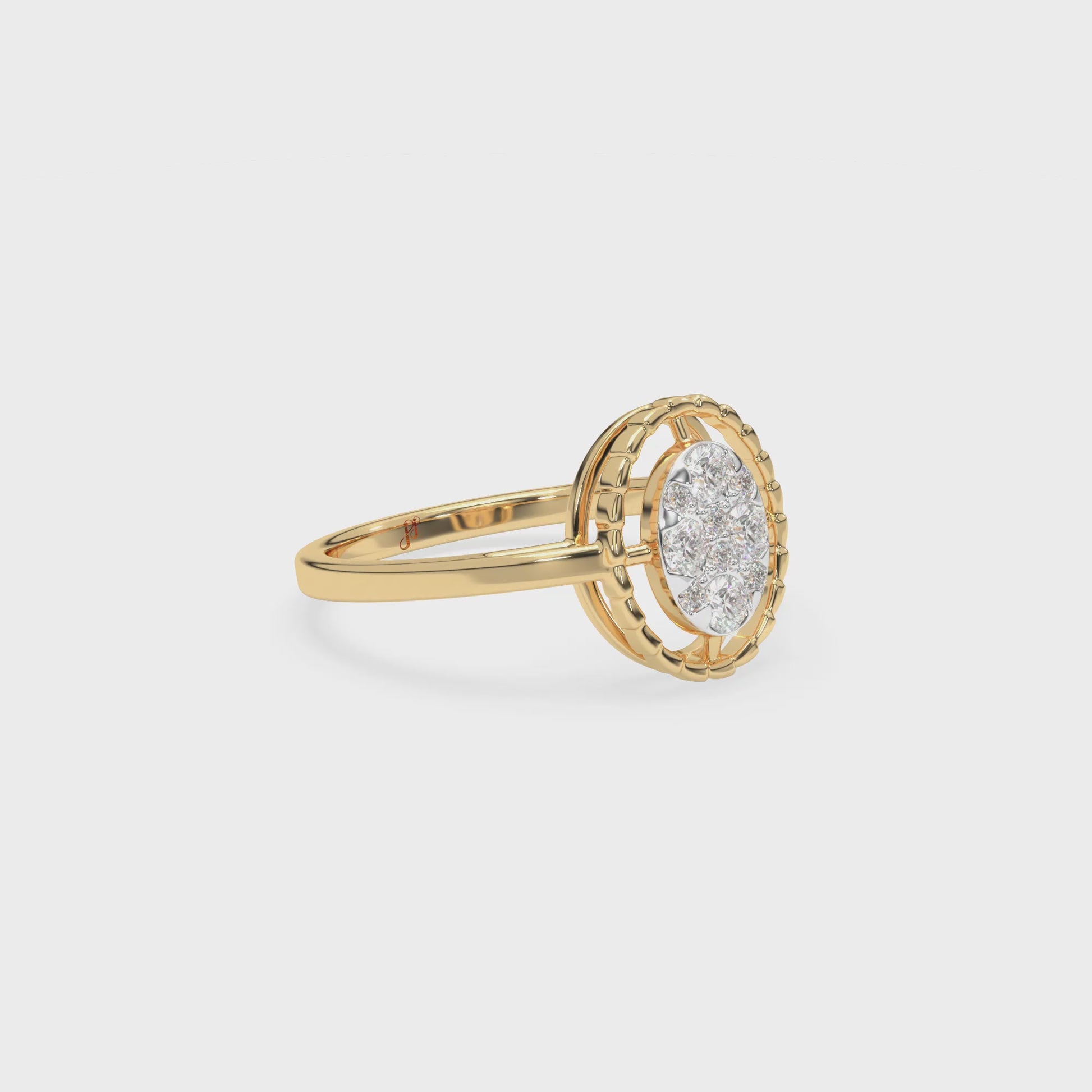 A sophisticated oval diamond ring surrounded by a delicate halo of sparkling stones, set on a sleek and minimal band. Its graceful design makes it a timeless choice for engagements, celebrations, or everyday elegance. Available in Yellow Gold, White Gold, and Rose Gold.