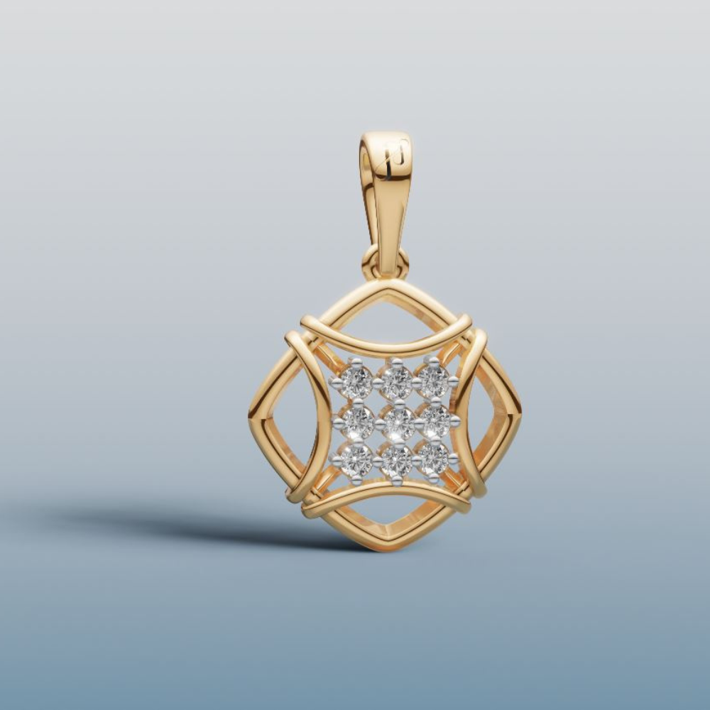The Vishnu Vriti pendant symbolizes the protective embrace of Lord Vishnu. Its intricate nest-like design cradles brilliant diamonds, signifying shelter, care, and divine grace.