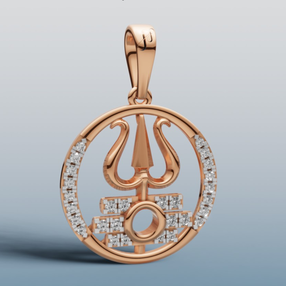 This pendant features Om and Trishul in gold with diamonds, reflecting elegance and spirituality.